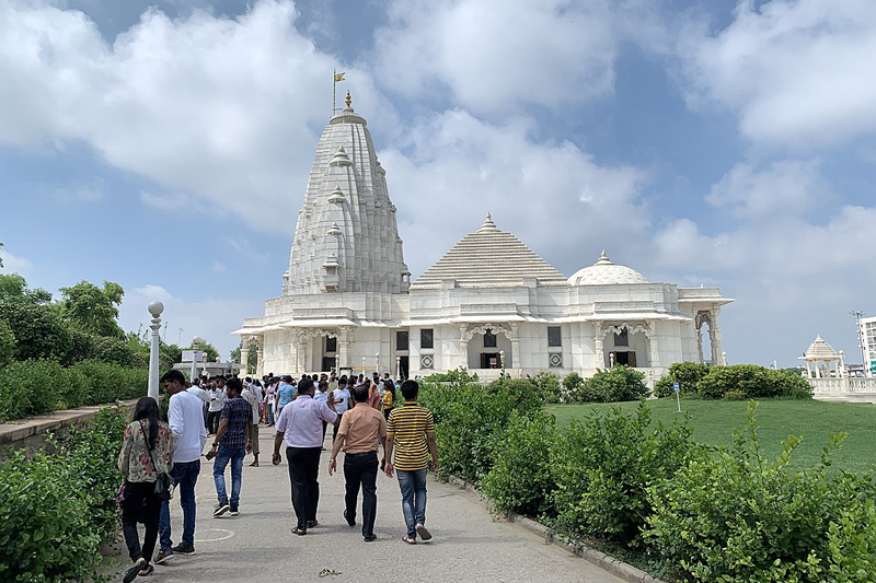 This modern white marble temple is dedicated to Lord Vishnu and Goddess Lakshmi. It is also known as the Laxmi Narayan Temple. It is set against the Moti Dungari Hill.