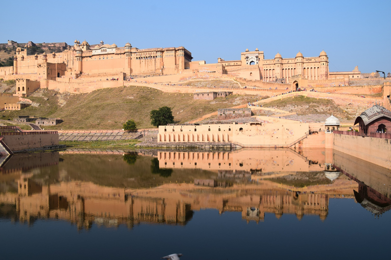 Raja Man Singh I built this beautiful fort that looks out over Maota Lake and is known for its artistic Hindu style features. The fort has big walls, a bunch of gates, and roads made of stones.