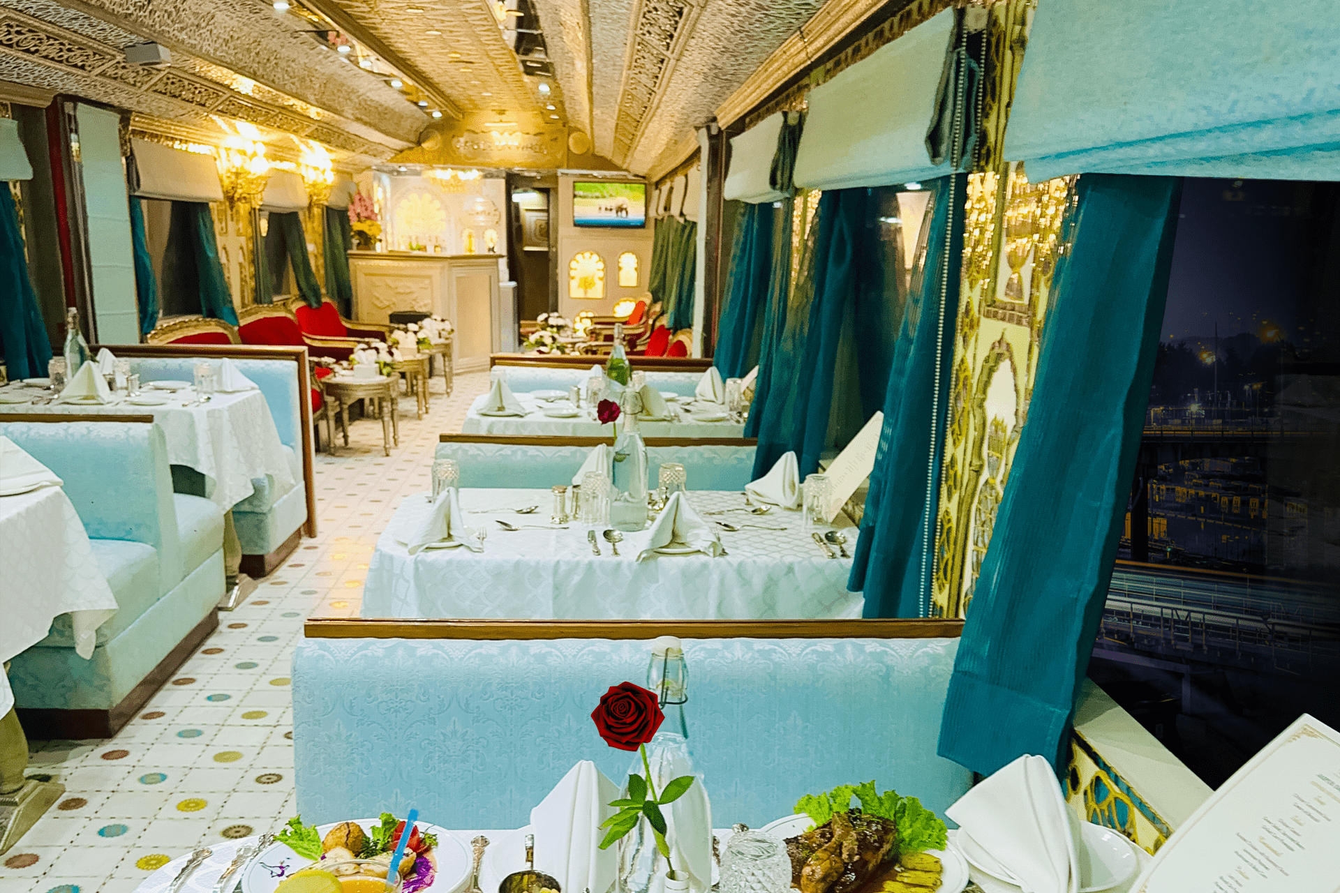 throughout the Palace on Wheels dining area.